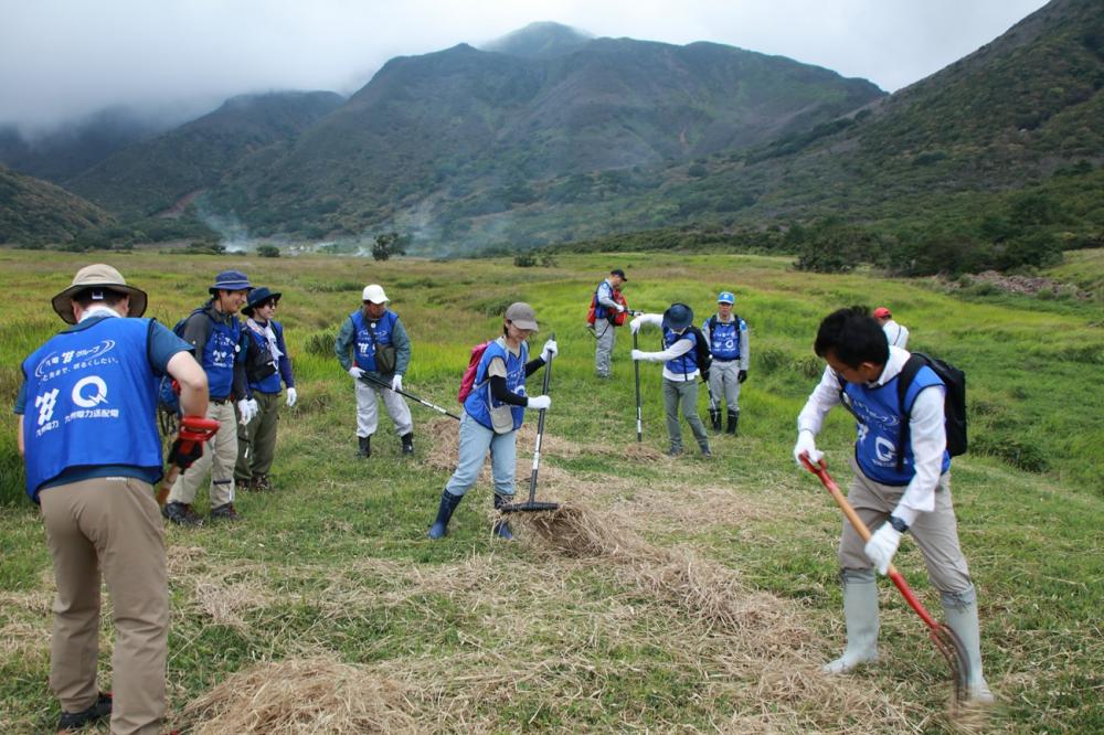 9月20日(土)、地元の自治体や企業、団体で構成する「坊ガツル野焼き実行委員会」の皆さまと、九電グループの従業員・家族などのボランティア159名にご参加いただきました。