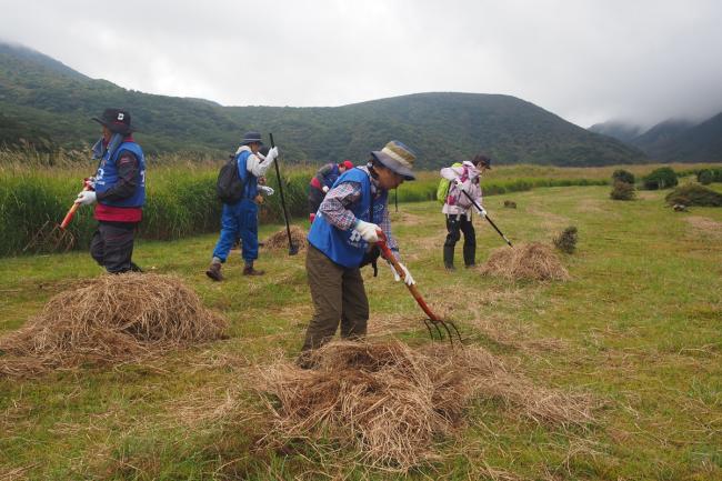 当日の坊ガヅル湿原は終日曇り空で、強い風が吹くなど肌寒い気候でしたが、安全を最優先に作業を進め、無事に完了することができました。
