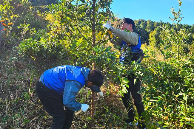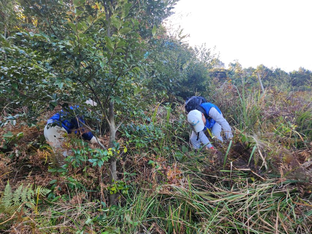 今回は雑草の除草だけでなく、苗木に絡みつくカズラも丁寧に切り落としてもらいました