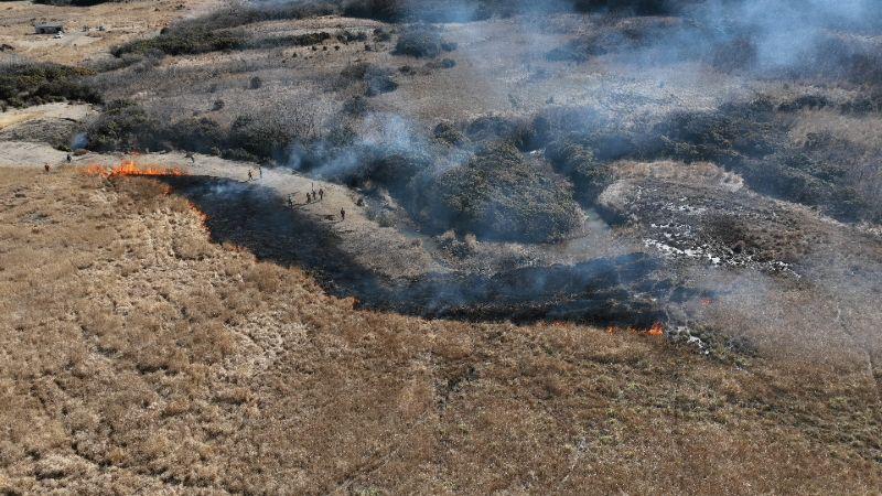 野焼きは、害虫を駆除し植物の芽吹きを促すことを目的に湿原を焼き払う作業です
