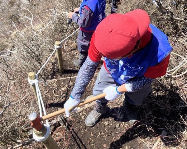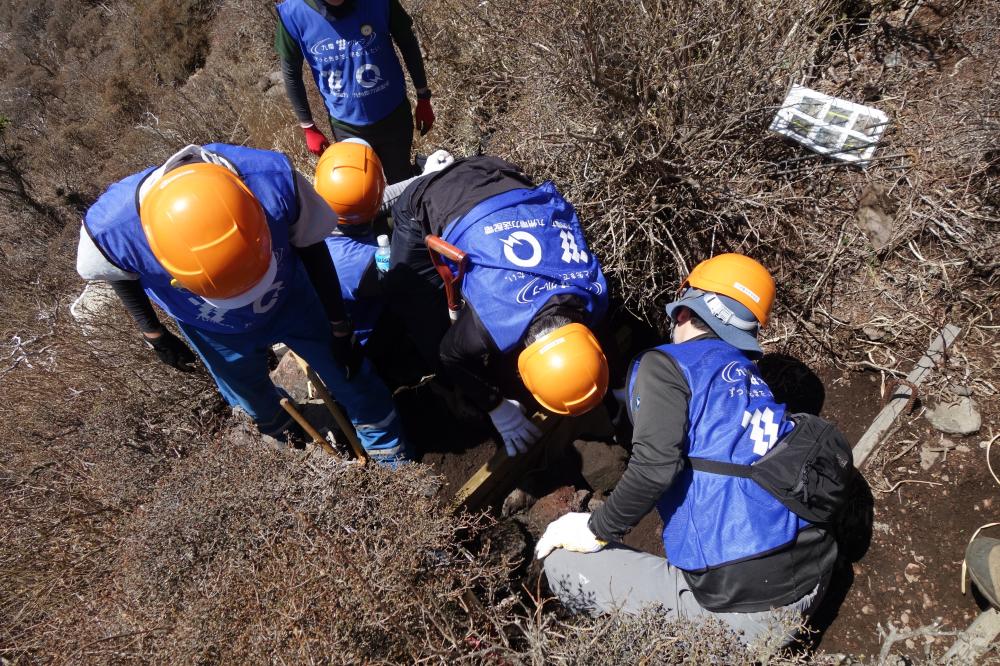 登山道整備班は従来工法班2班、新工法班2班で構成