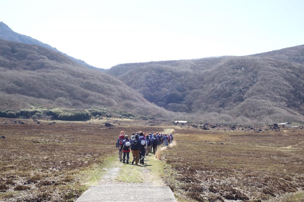 坊ガツル湿原に立入ると、野焼きの跡が残る中でも、春の芽吹きを感じられました。