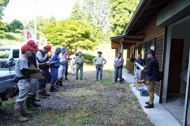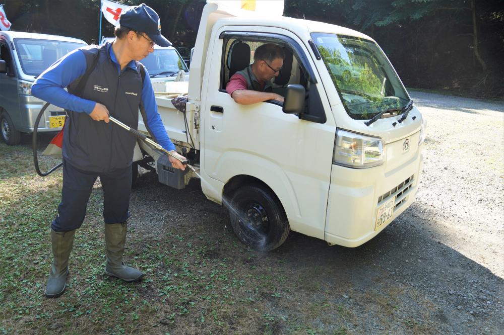 この日は、大変暑い中での活動となりましたが、参加者の皆さんは各班リーダー・サブリーダーの指示のもと、熱中症にならないように適宜休憩を取り、水分補給を行いながら、刈払機で懸命に草を刈ったり、刈った草を熊手でまとめたりと、汗を流しながら一生懸命取り組んでいただきました。