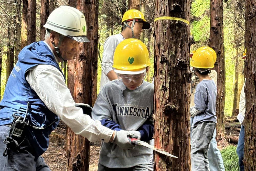 ・ 地球温暖化の現状や森の役割等について学ぶ「講話」と、林業体験、森林観察、育林体験等の「体験※」を組み合わせた環境教育です。SDGsやカーボンニュートラルに関する理解も深めます。