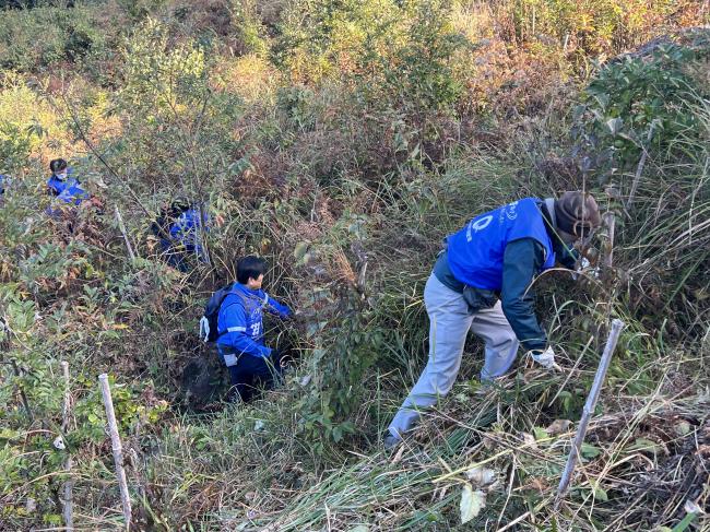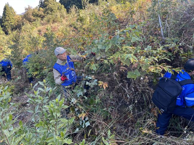 雑草が密集したエリアに入り込んで、懸命に除草を進めていきます