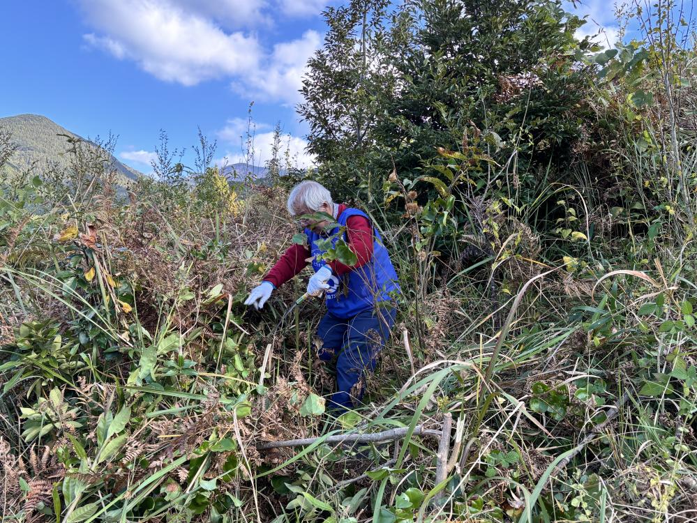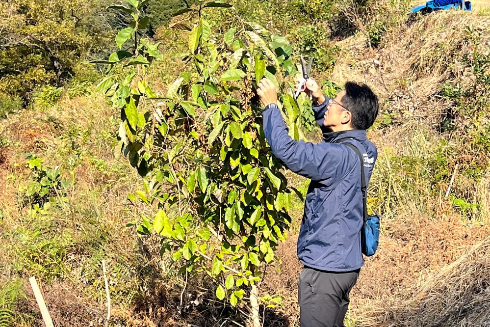 今回は雑草の除草だけでなく、苗木に絡みつくカズラも丁寧に切り落としてもらいました