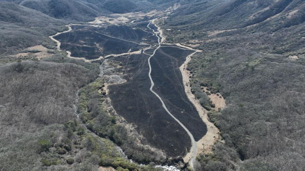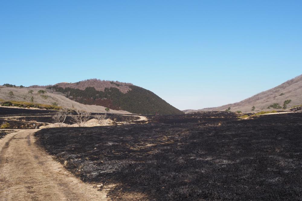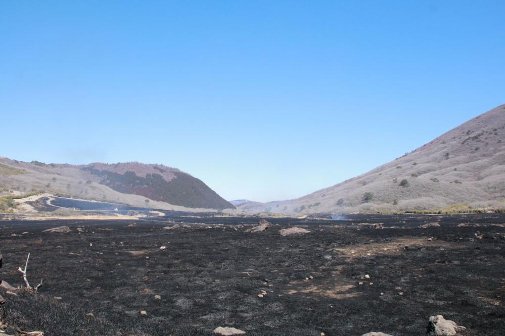 今回の野焼きは火の進みも良く、約33haの湿原が1時間半かけて焼け落ち、坊ガツル湿原は一面が黒く染まった風景へと変わりました!