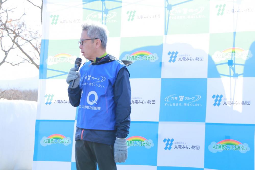 九電みらい財団と九州電力大分支店が事務局となり、環境省、竹田市および九重の自然を守る会など地元の皆さまや、九電グループの従業員とそのご家族の皆さま総勢157名で実施しました。寒い日が続き、当日の降雪を心配しましたが、風況や気温などの条件が整い、安全に火入れ作業を進めることができ、湿原は漆黒の絨毯と化しました。