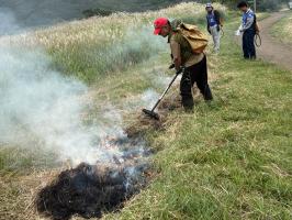9月20日(土)、坊ガツル湿原において「野焼き(本焼き)」の準備作業である「輪地焼き」を行いました。地元の自治体や企業・団体で構成する「坊ガツル野焼き実行委員会」の皆さまのほか、九電グループの従業員・家族など159名の皆さまにご参加頂きました。
