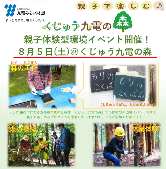 - 2023年度「親子で楽しむ♪くじゅう九電の森」を開催します!!